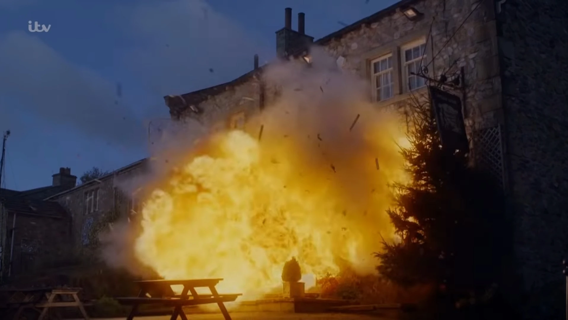 - 25th December - The Woolpack explodes after Al puts a metal whisk in the microwave on a timer and turns on the gas hob as part of his plan to turn the much loved pub into flats. Manpreet and Meena are injured in the blast.