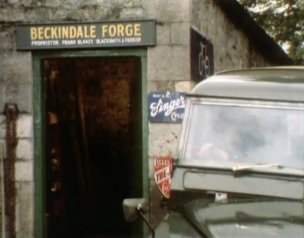 Beckindale Forge (now the Emmerdale Veterinary Surgery) was owned by Dale Properties and rented out to Frank Blakey, along with the joining cottage - Smithy Cottage. Frank originally bought the lease from Tommy Folkes. Beckindale Forge closed in 1974 when Frank left the area with his wife Janie Blakey. Frank's mother in law Dolly Harker held the keys and allowed traveller Dryden Hogben to stay at the forge. Dryden left the village in July 1974.