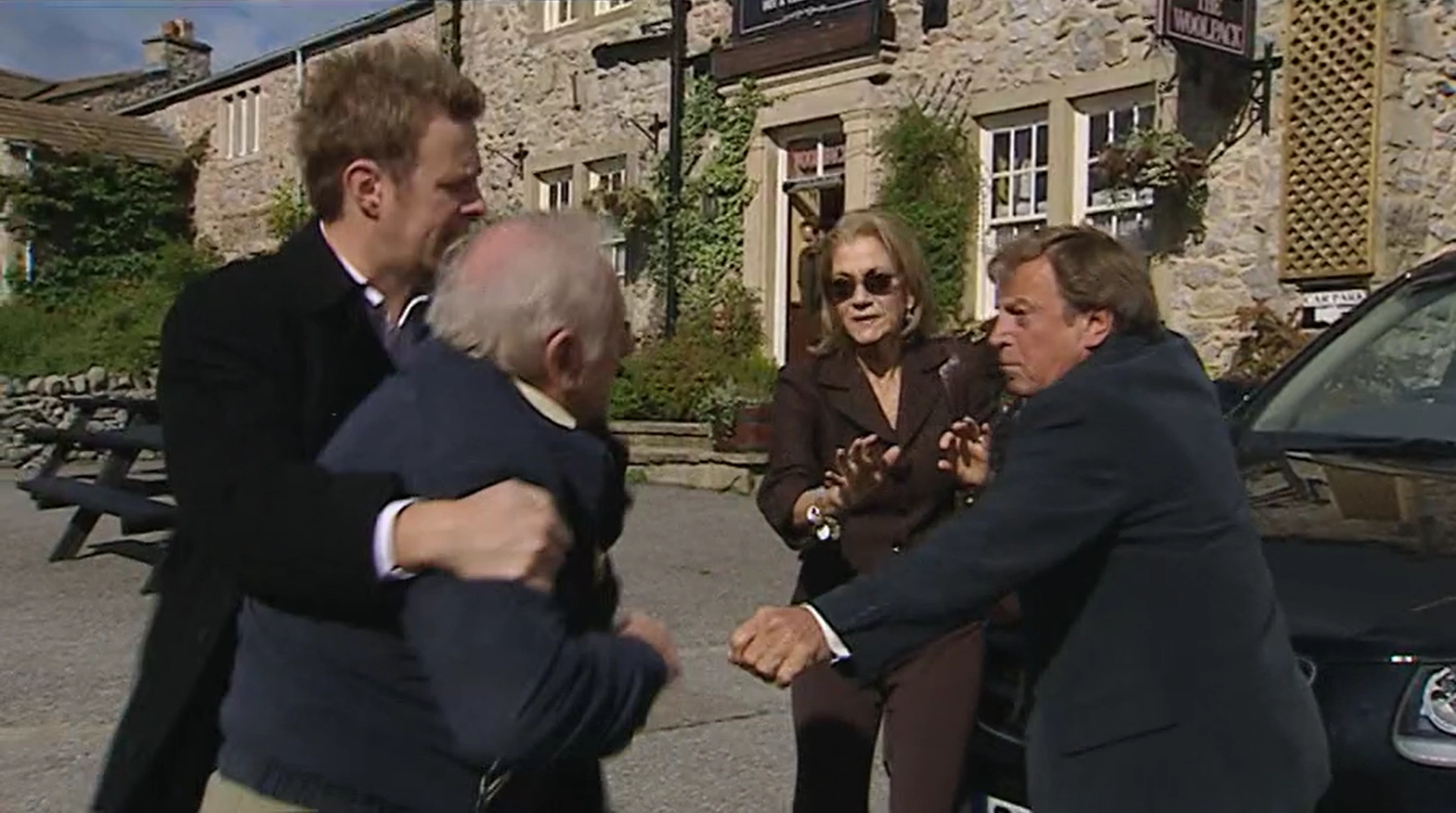 When Len hears from Pearl that Edna has been increasingly upset. he seeks her out in church. Though Edna insists on being left alone, she unintentionally confirms Len's theory when they slowly discuss her situation with Tom. Knowing that he's the cause of Edna's isolation, Len storms over to confront Tom at Home Farm where Pearl is forced to leave the duo alone. Tom belittles Len and reveals the truth about Edna's son. Edna is later mortified to learn that Len knows her secret and promptly throws him out. Furious at the situation, Len seeks out Tom for round two; they briefly engage in a physical fight which Carl breaks up, whereas Jimmy couldn't help but watch in delight at seeing their father getting pounded. The confrontation ends with Tom proclaiming Edna to be responsible for her own actions, and Len promising Tom that his comeuppance will be inventible one day. Meanwhile, Matthew secretly continues to negotiate with property developer Chris Horton behind Tom's back - yet it doesn't go as expected when Chris points out that his family are no strangers to having a "terrible reputation". Following an earlier discussion with Horton in the cafe, Kelly sees an opportunity when he leaves his mobile behind, and when she returns his phone her efforts are rewarded by the offer of a drink. When Emily throws a spanner in the works by leaving Kelly to run the café alone, she is determined not to miss her date and closes up. This prompts a furious row with Viv and Bob, resulting in Kelly revealing a few home truths. In addition, when Bob dismisses Viv's warning to keep away from Tom, her anxiety escalates and she feels a twinge in her stomach.