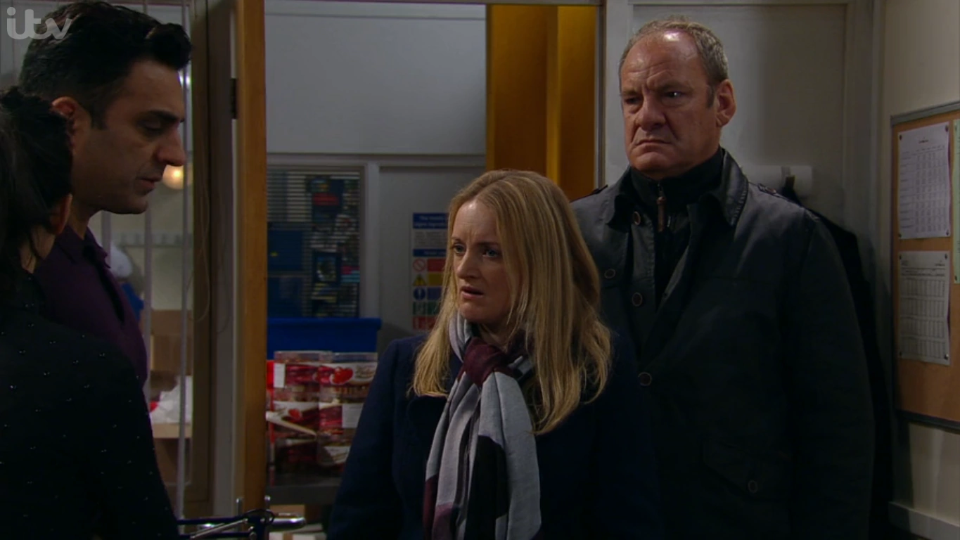 - TV Times synopsis: Nicola suspects the truth about the fire, and Rakesh and Priya plead with Ronnie to keep quiet for his own sake - but instead he confirms her suspicions that Rakesh deliberately started the blaze; Finn offers to pay Nathan to help him in his latest desperate attempt to get back together with Kasim; and Chas warns Aaron not to let his jealousy get out of control.